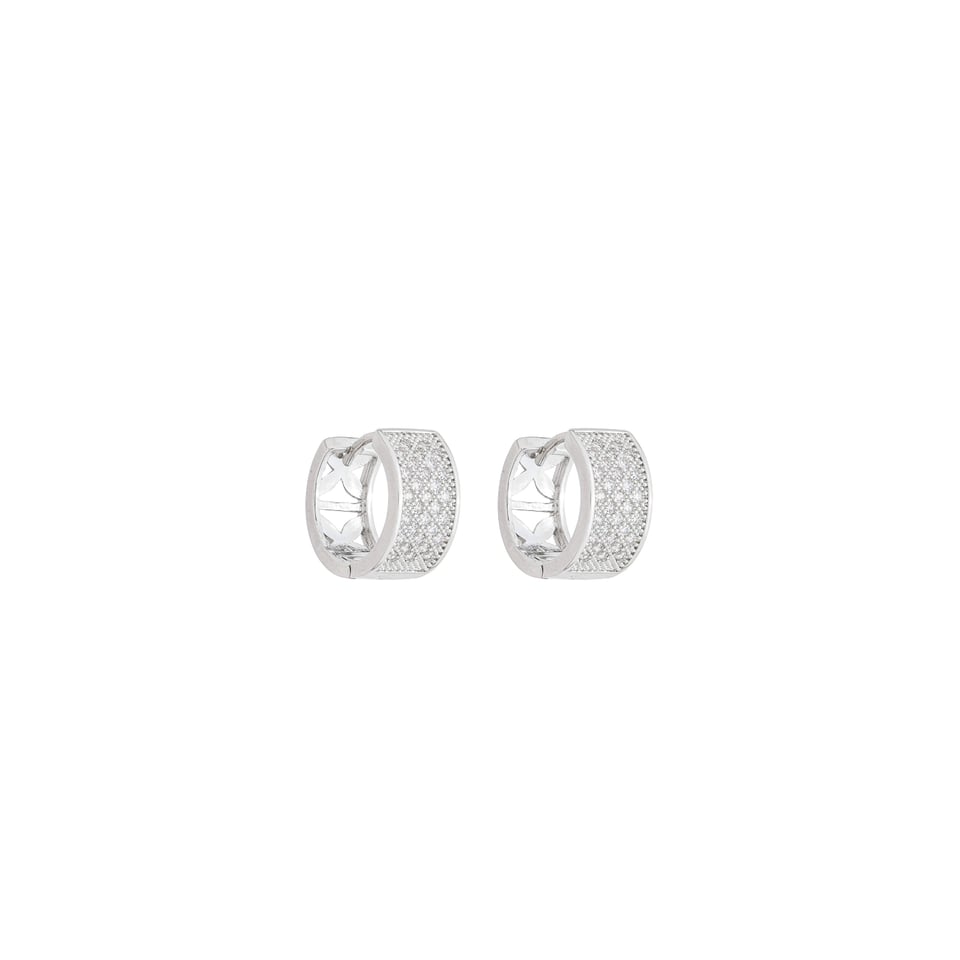 Brinco argola click com pedras 2mm zircônia cravejação inglesa, medindo 1,5cm de diâmetro BANHO DE RÓDIO