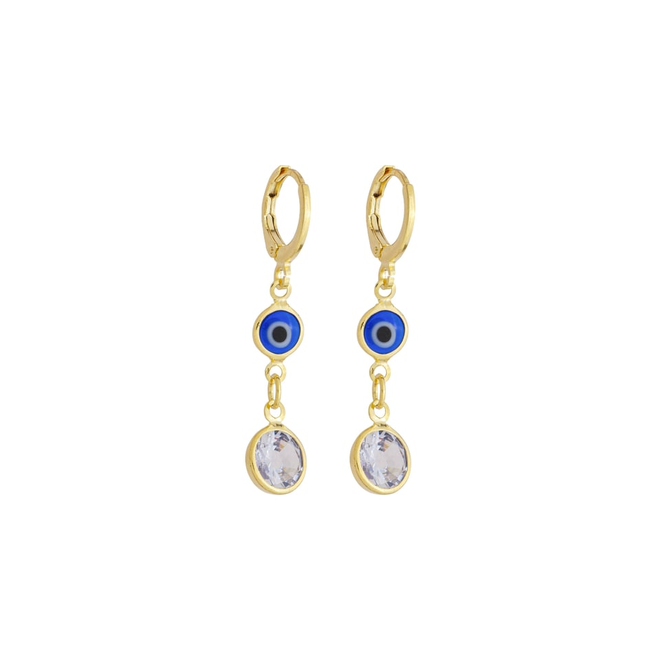 Brinco argola com olho grego e pedra 8mm zircônia, medindo 4cm de comprimento BANHO DE OURO