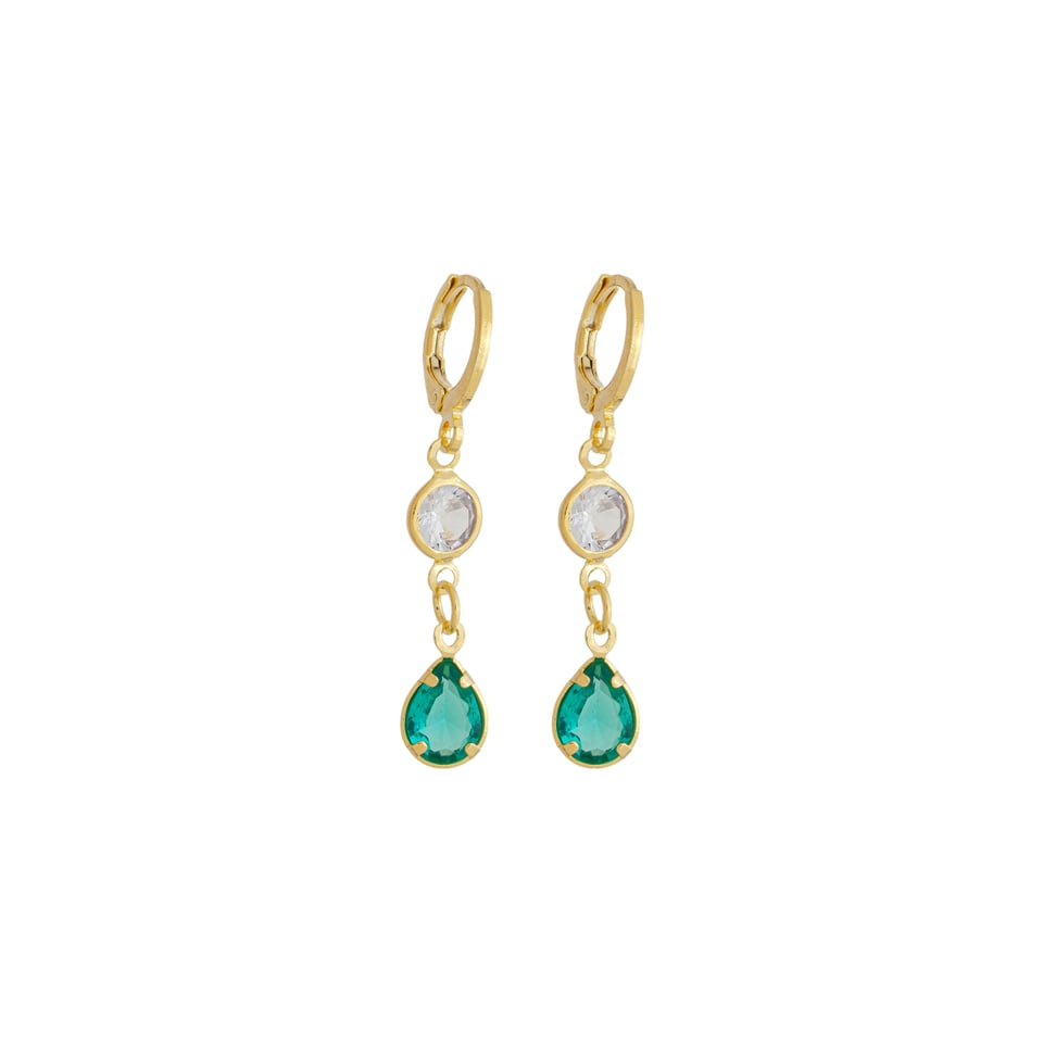 Brinco argola com pedra 6mm zircônia e gota 9x7mm zircônia, medindo 4cm de comprimento BANHO DE OURO