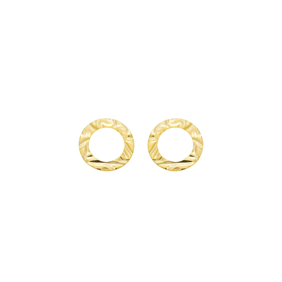 Brinco orgânico chapa redonda amassada, medindo 3cm de diâmetro BANHO DE OURO