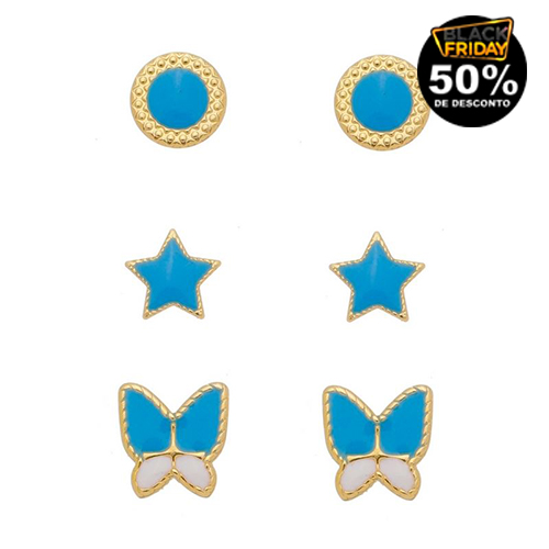 Brinco trio estrela e borboleta azul - 0523847