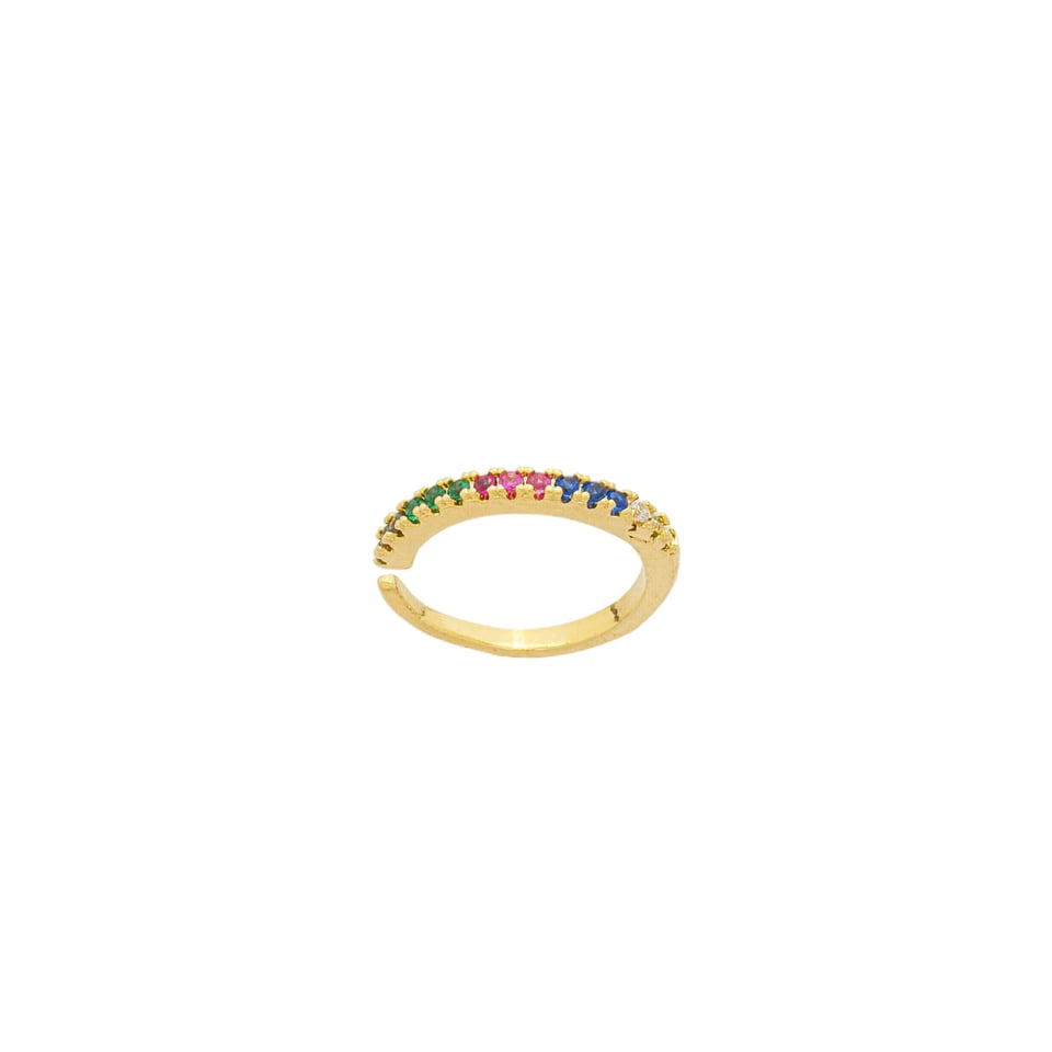 Piercing de pressão para cartilagem com 3 fileiras de pedras 1mm zircônia colorida, medindo 1,2cm BANHO DE OURO