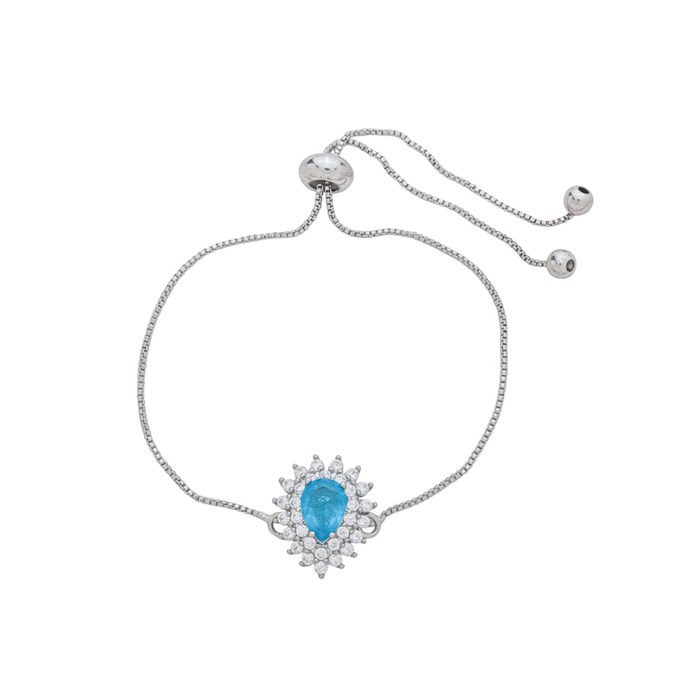 Pulseira malha veneziana 1,10mm com gota azul cravejado com pedras 1mm zircônia, fecho regulável BANHO DE RÓDIO