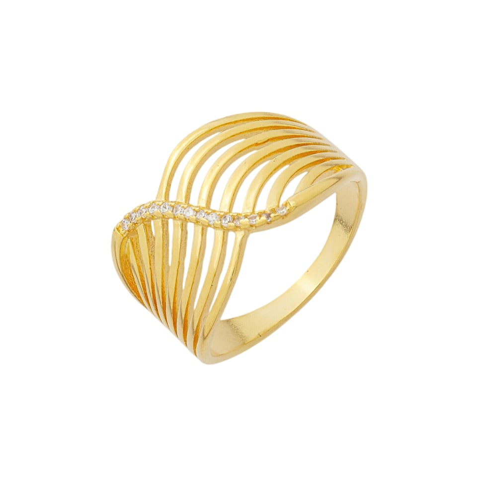 Anel onda trabalhado e com pedras 1,0mm zircônia colorida BANHO DE OURO