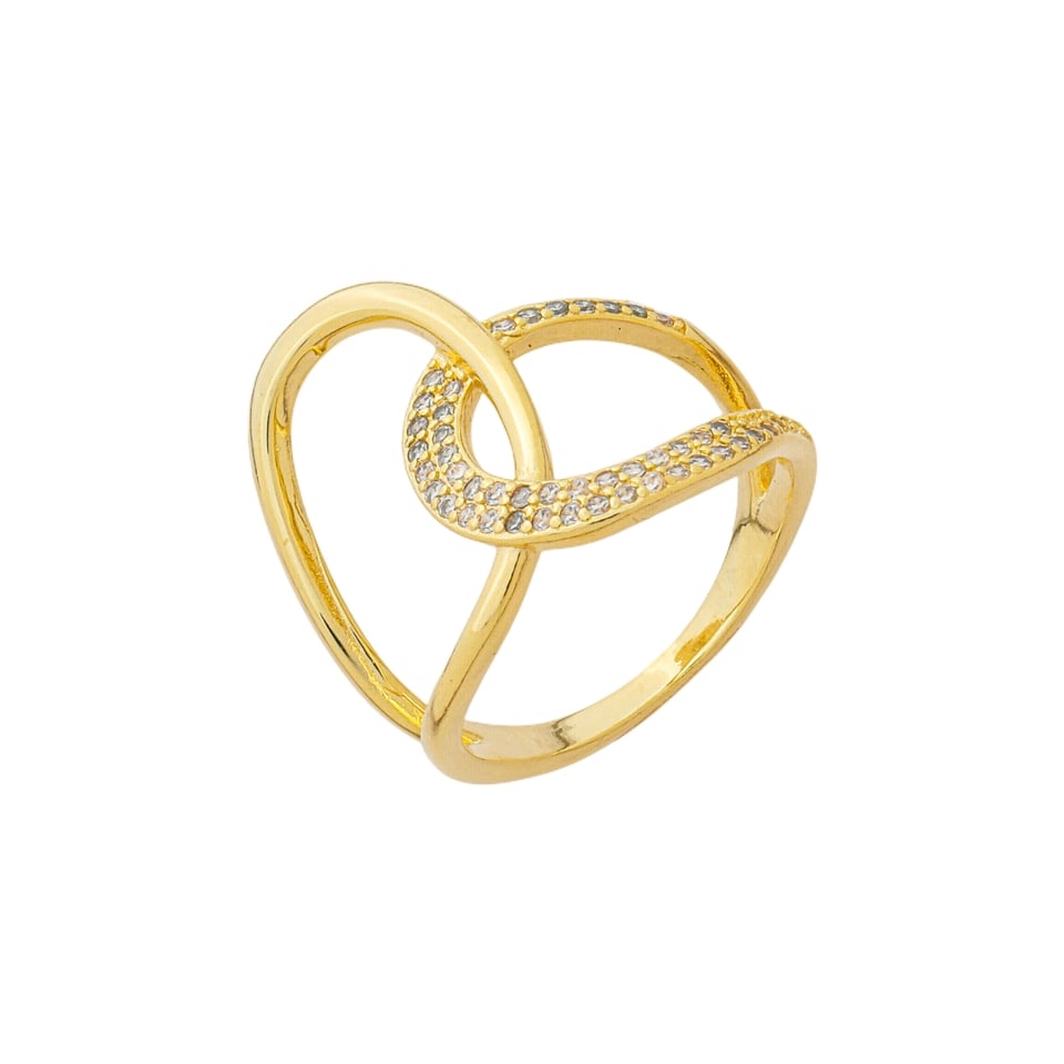 Anel fios entrelaçados com pedras 1mm zircônia, medindo 2cm na parte superior BANHO DE OURO