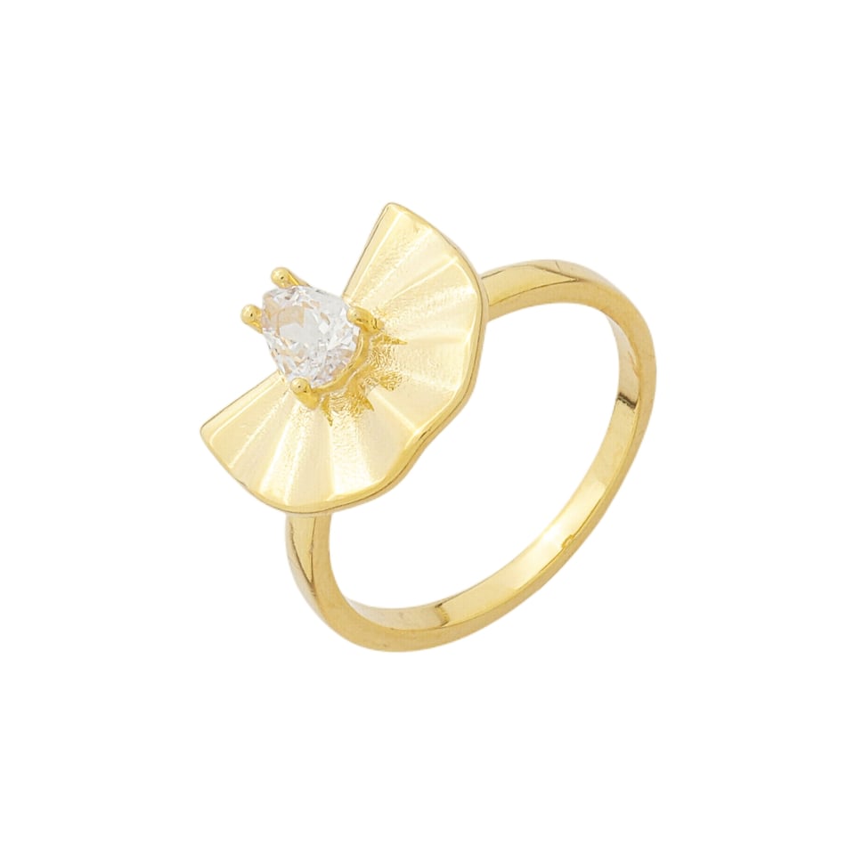 Anel orgânico leque amassado com pedra 6x4mm gota zircônia medindo 1,1x1,3cm