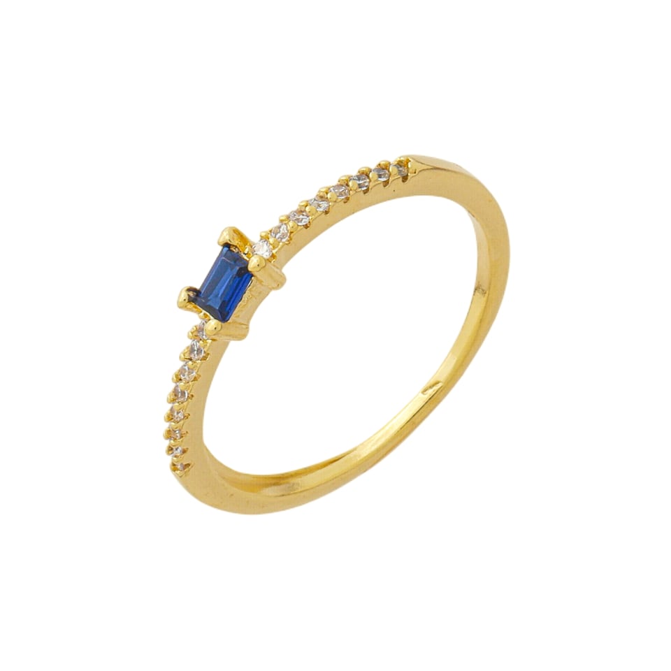 Anel pedra retângulo 2x4mm zircônia azul e em volta pedras 1mm zircônia  BANHO DE OURO