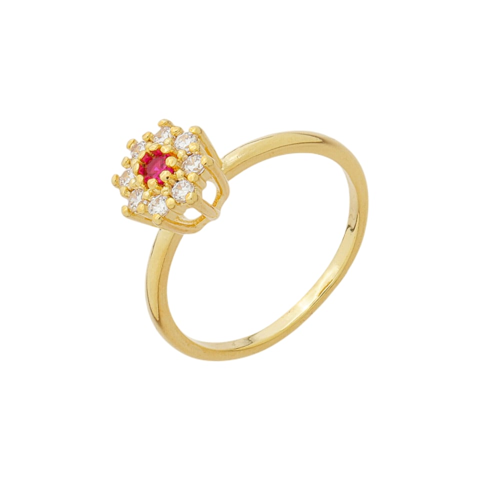 Anel pedra 3mm zircônia pink rubi e em volta pedras 1,5mm zircônia BANHO DE RÓDIO