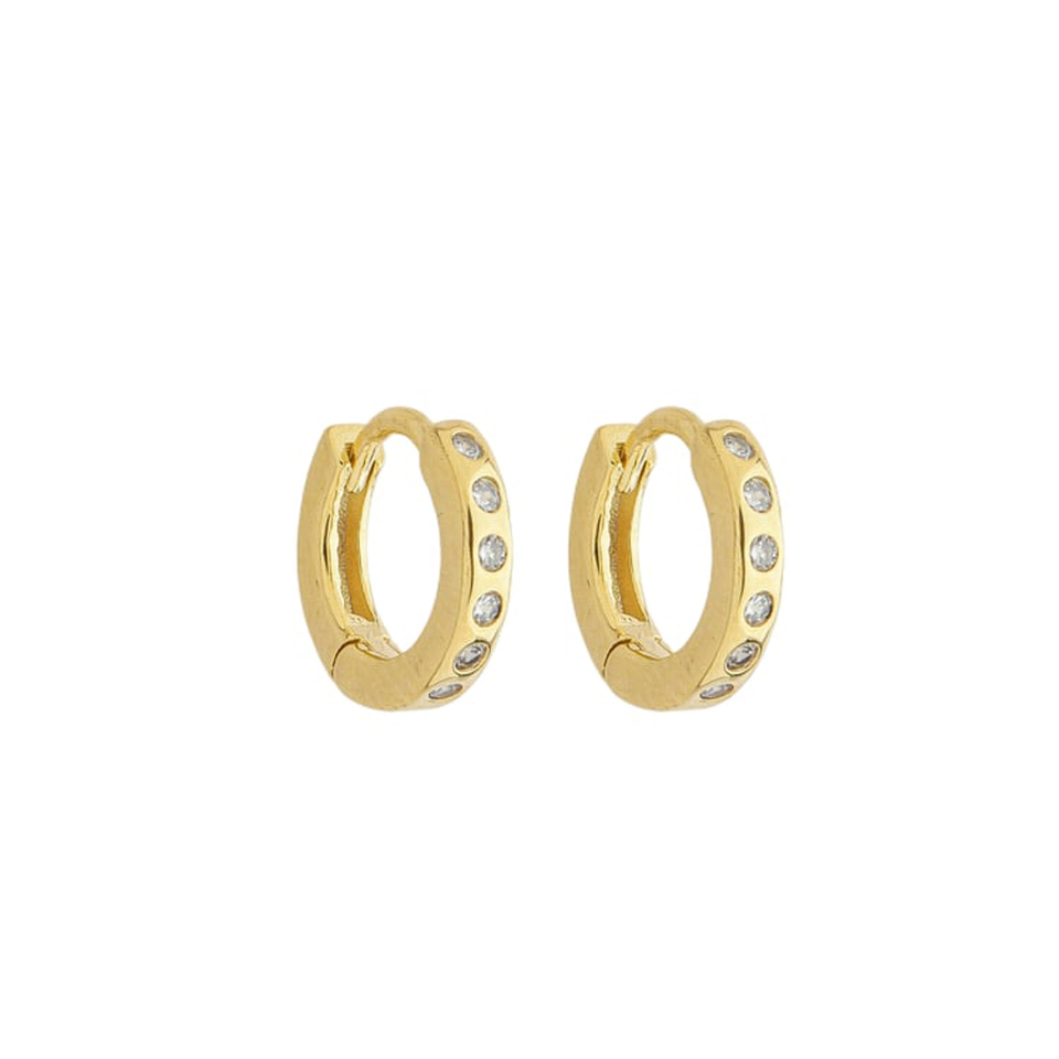 Brinco argola click com pedras 1,25mm zircônia, medindo 1,1cm de diâmetro BANHO DE OURO
