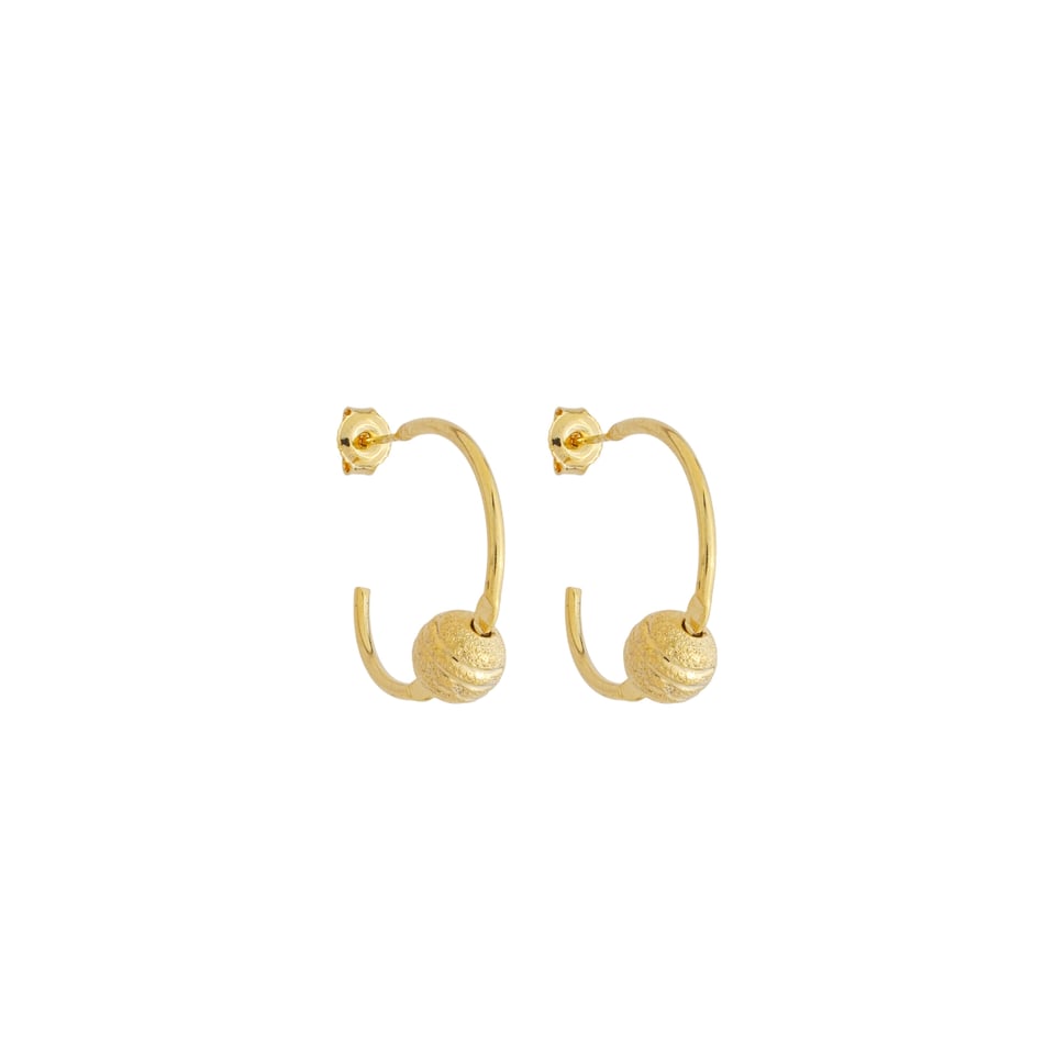 Brinco argola com bola 8mm diamantada trabalhada, medindo 2,5cm de diâmetro BANHO DE OURO