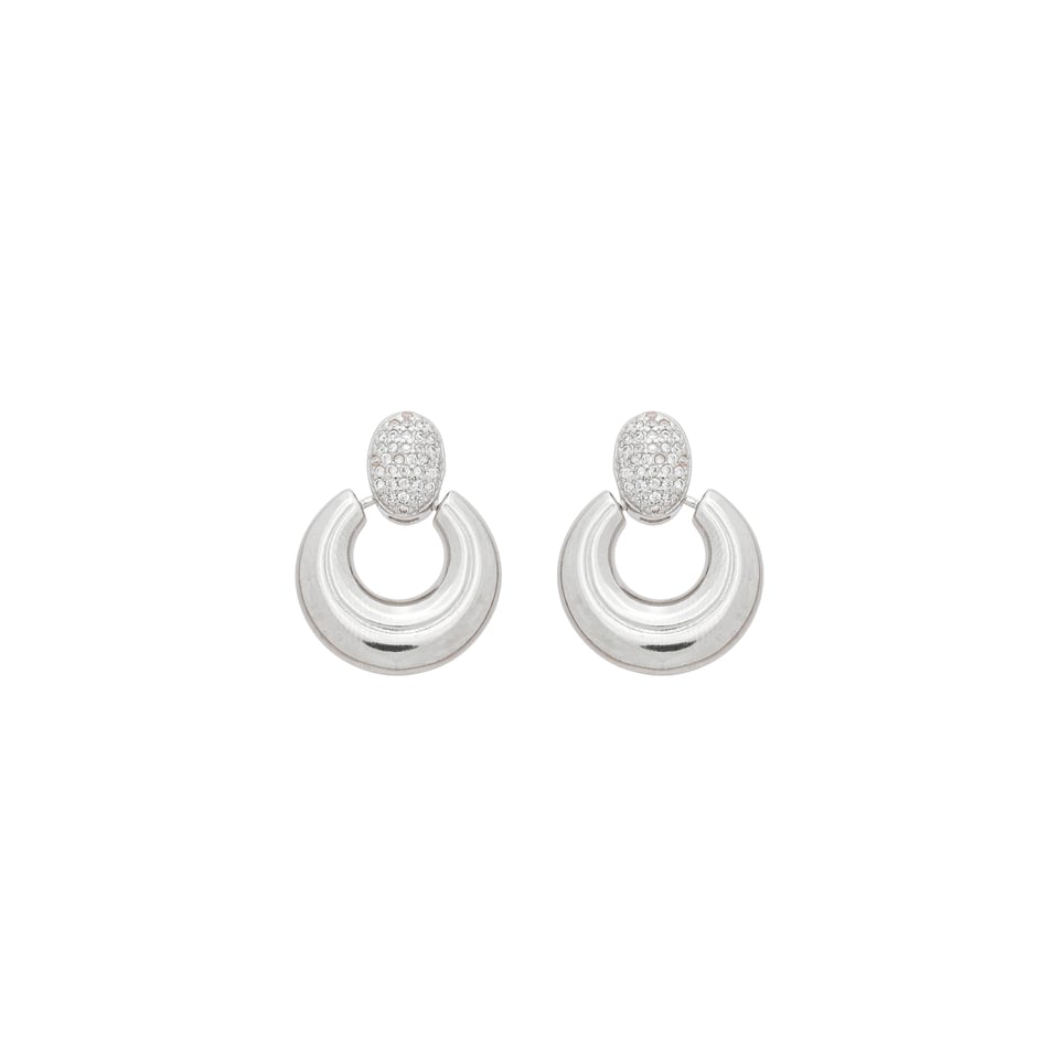 Brinco base oval pedras zircônia e chapa lisa medindo 2,5x1,8cm BANHO DE RÓDIO