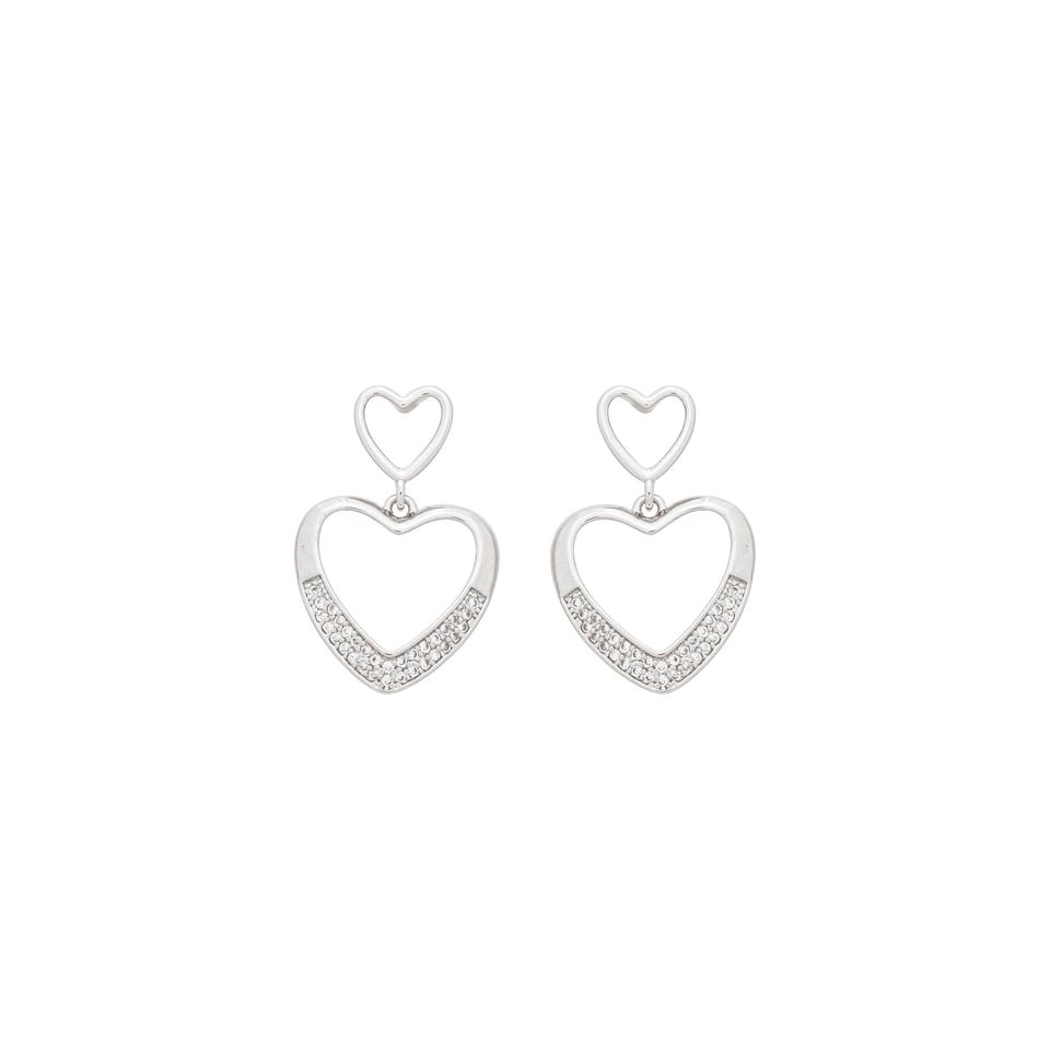 Brinco coração com pedras zircônia, medindo 2,6x1,7cm BANHO DE RÓDIO