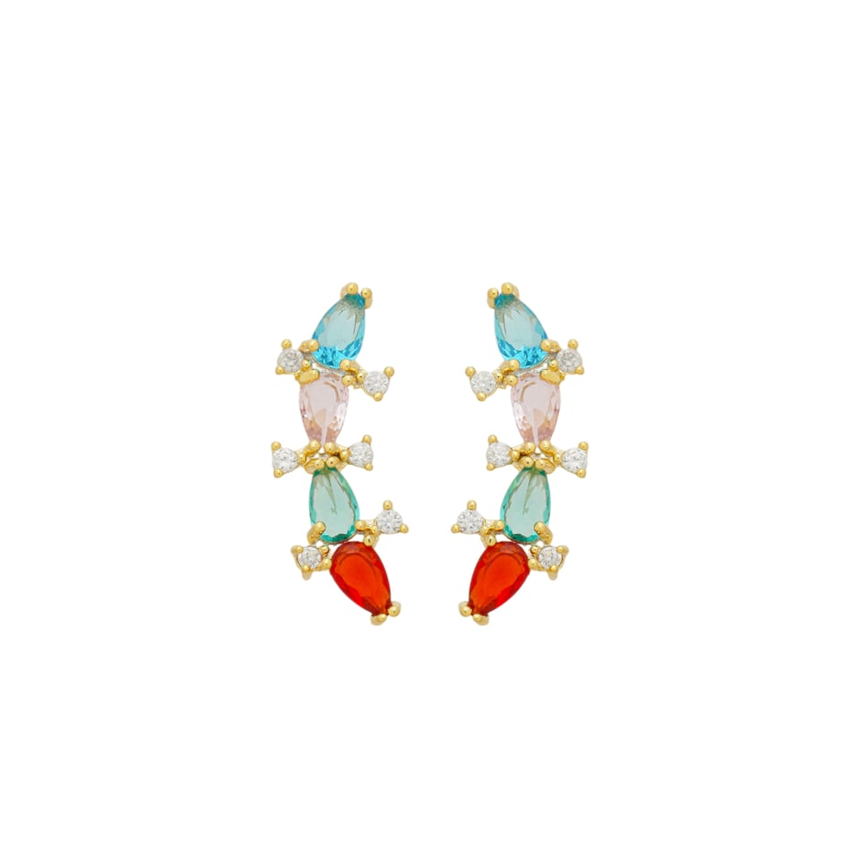 Brinco earcuff pedra gota zircônia colorida e pedra 1,5mm zircônia branca, medindo 2cm de comprimento BANHO DE OURO