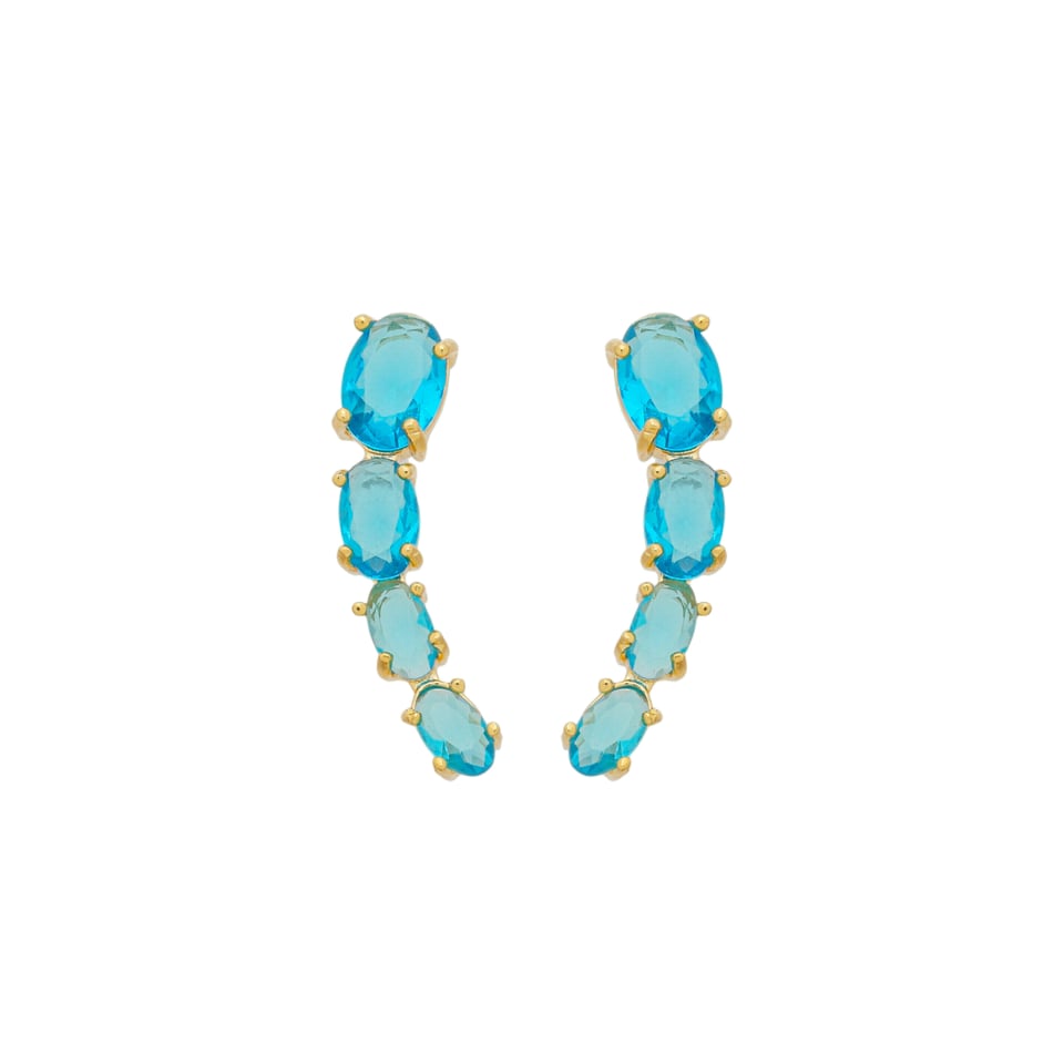 Brinco ear cuff com pedras oval zircônia azul, medindo 2,2cm de comprimento BANHO DE OURO
