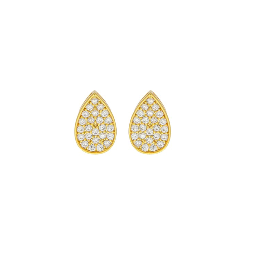 Brinco gota cravejada com pedras 1mm zircônia, medindo 0,8x0,5cm BANHO DE OURO