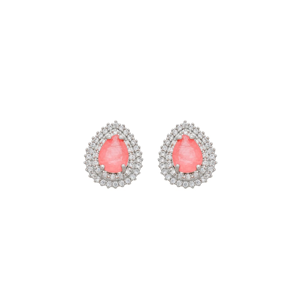 Brinco gota pedra fusion e em volta cravejado com 2 fileiras de zircônia, medindo 1,7x1,4cm BANHO DE RÓDIO