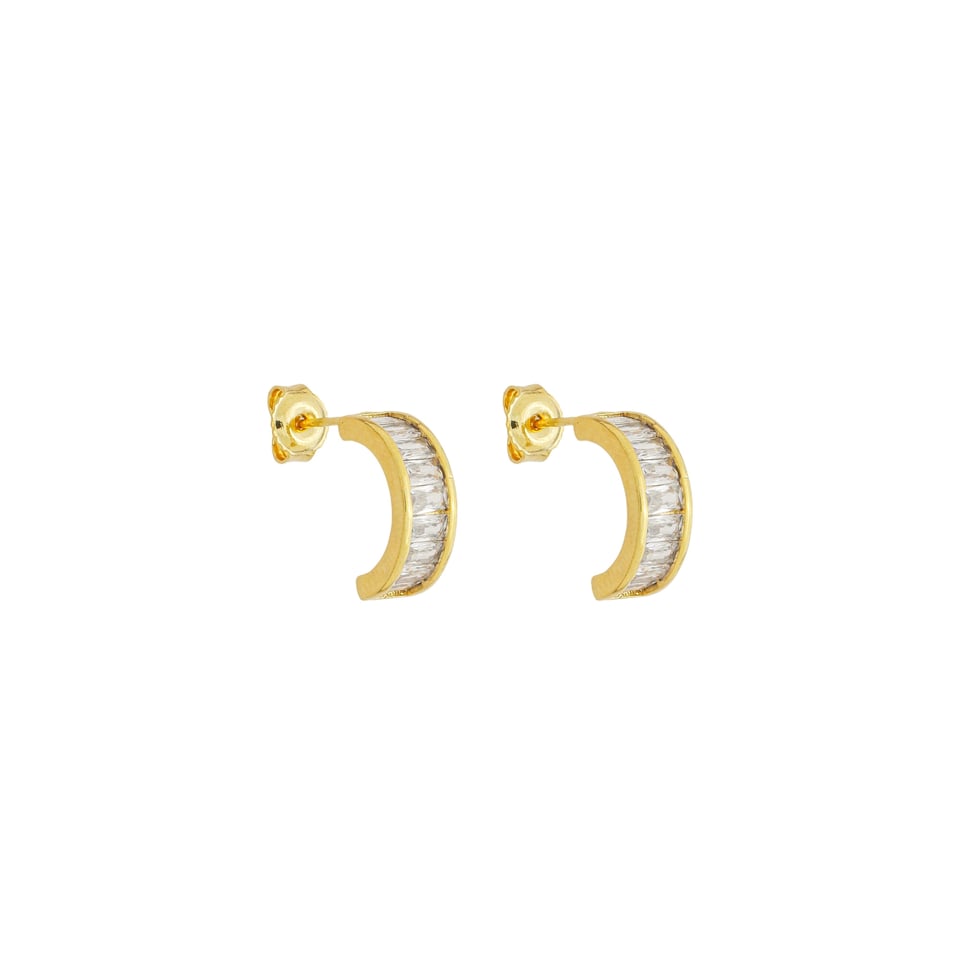 Brinco meia argola com pedras 4x2mm baguete zircônia, medindo 1,5cm de comprimento BANHO DE OURO