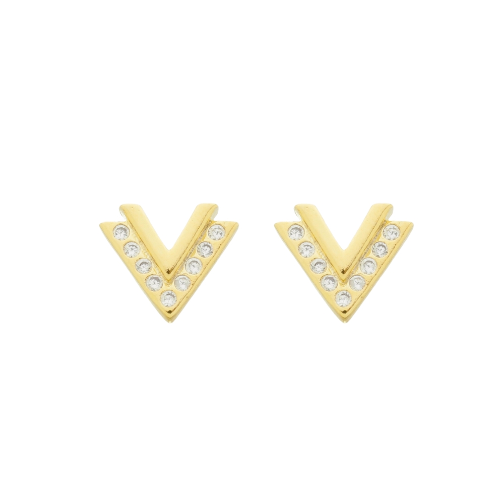 Brinco fixo V pedras 1,25mm zircônia, medindo 0,8x0,9cm BANHO DE OURO