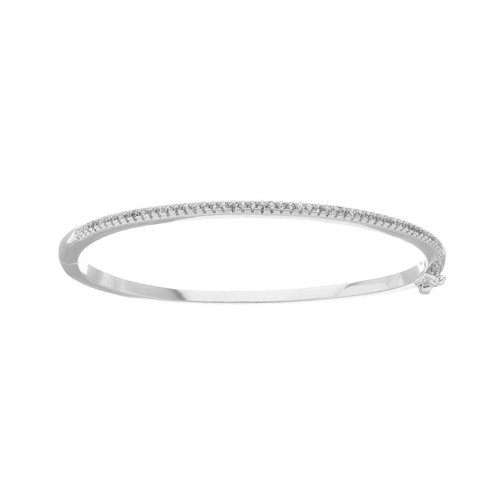 Bracelete com duas fileiras de pedras 1mm zircônia, medindo 5,5x 6,2cm BANHO DE RÓDIO