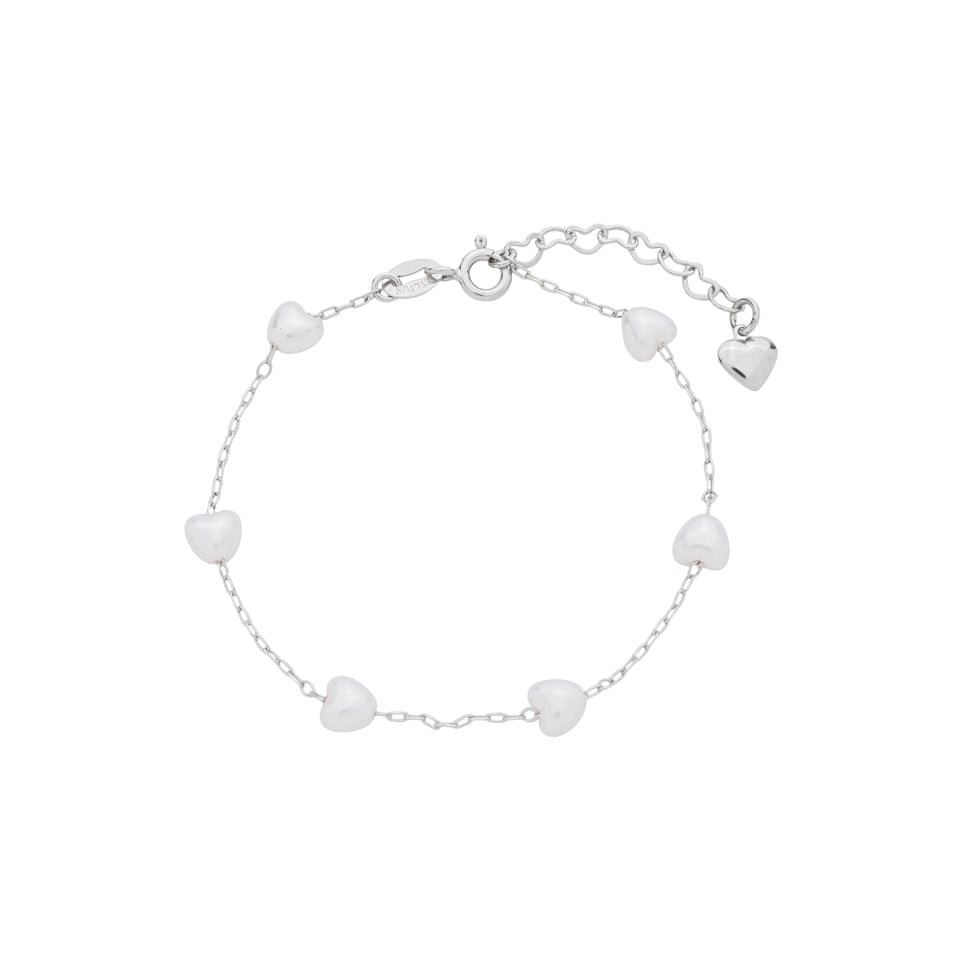 Pulseira malha cartier 1,10mm com coração 6x6mm pérolas, comprimento 16,5cm + 3cm de extensor BANHO DE RÓDIO